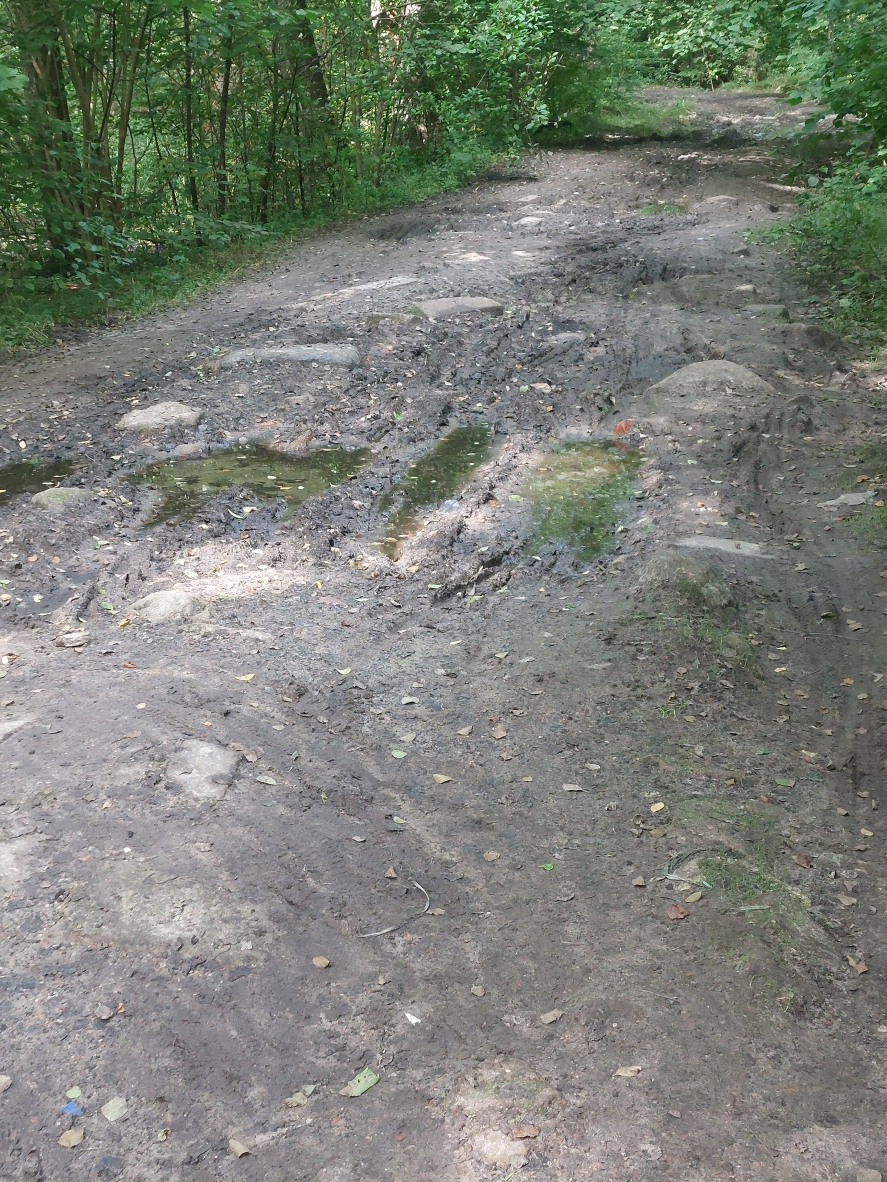 Ein Rennradfahrer, den ich nach Möglichkeiten gefragt habe, hat mich auf einen kleinen Weg geschickt. Komoot kennt diesen Weg wohl auch nicht. Aber es ging zum Teil auf Schotterwegen entlang, fast bis nach Kaunas.