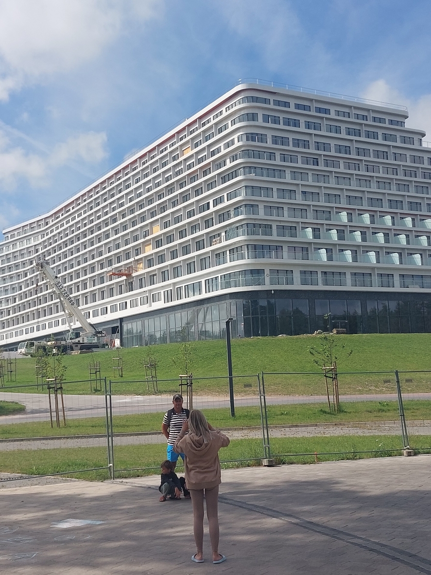 Über den Ferienrort Kalanga gings Richtung Klapeida. An der ganzen Küste ist ein riesiger Jahrmarkt: Riesenrad, Karussell, Spielplätze, Ramschläden und jede Menge Eisdielen. Der Veloweg aber war wunderschön durch den Wald. Es waren zwei Spuren vorhanden und jede Menge Velofahrer so dass man jeweils ausweichen musste.