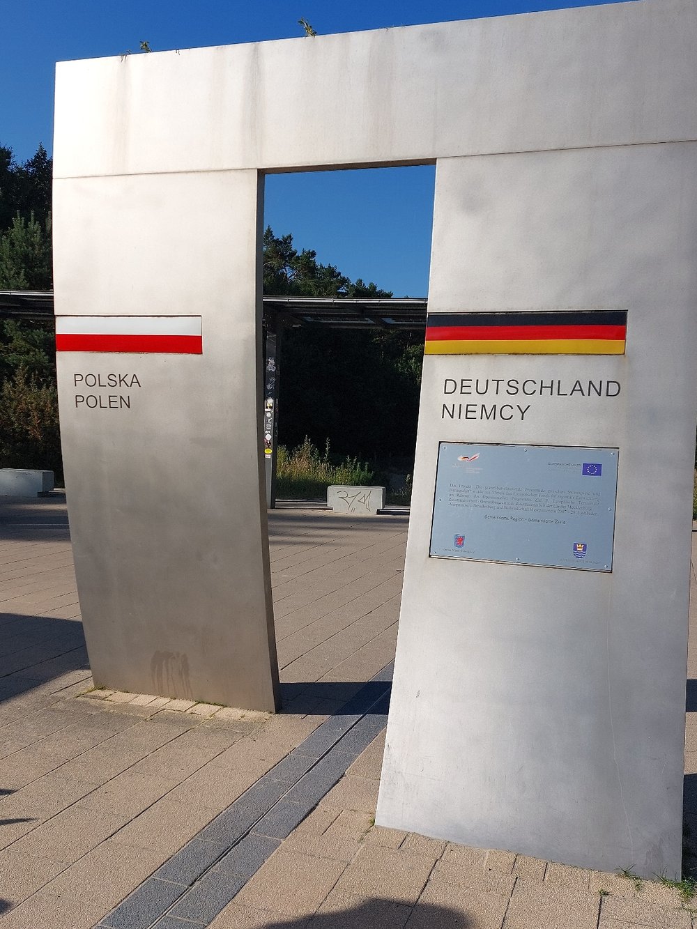 Zuerst gings über eine lange Promenade, die die beiden Länder verbindet. An der Grenze standen zwei polnische Soldaten. Es gab jede Menge Jogger und Radfahrer die hier die Grenze querten