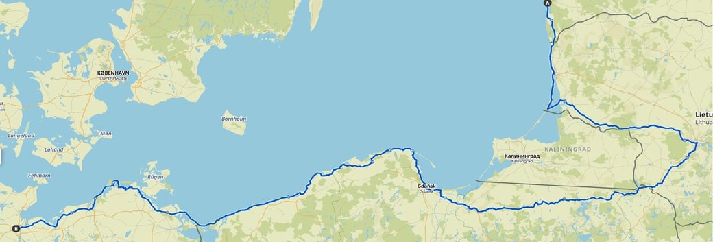 In der vierten Etappe fahre ich von Liepaja über Klapeda, die kurische Nehrung, Kaunas/Vilnius, Danzig bis nach Lübeck.