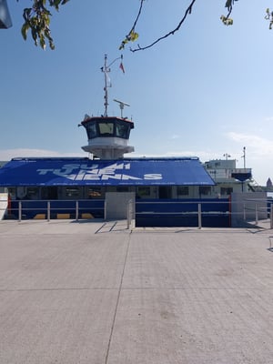 Im Augenblick fahre ich mit der Fähre von Nida auf der Kurischen Nehrung nach Silute.
