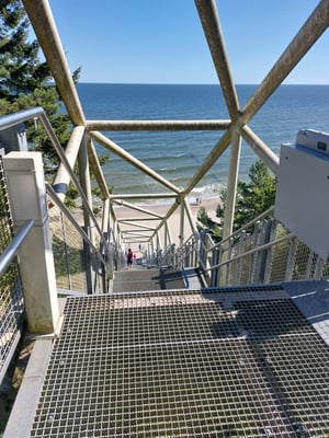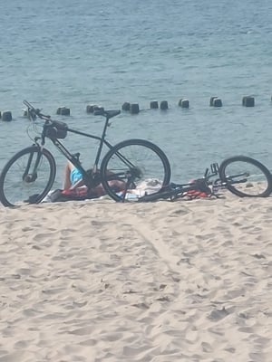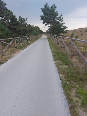 Der Fahrradweg über die Kurische Nehrung ist super ausgebaut. Er führt durch ein fantastisches Naturschutzgebiet. Überall hat es Sitzmöglichkeiten und Treppen über die Dünen an die Ostsee. Das Wetter war zu Beginn ausgezeichnet und die Prognosen sehr gut. Aber es kam anders. Insgesamt habe ich auf dem Weg drei starke Gewitter über mich ergehen lassen müssen. So habe ich mich gegen ein Bad in der Ostsee entschieden.