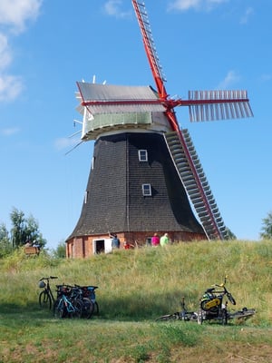Mit Zug und Flixbus gings von Gümmen nach Hamburg und dann wieder mit dem Zug nach Lübeck. Da ich genügend Zeit hatte, bin ich von Lübeck aus mit dem Fahrrad nach Travemünde gefahren. Dabei hat mich ein Gewitter mit Hagel überrascht. Bis ich meine Regensachen an hatte, war ich platsch nass und das Gewitter fast wieder vorüber.
