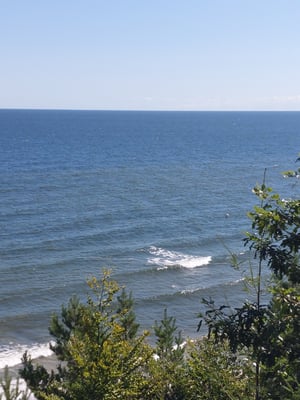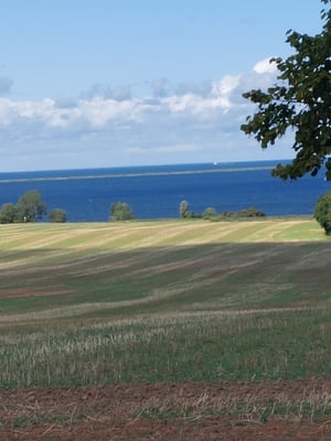 Es wehte heute ein eisiger Wind. Auch hat sich die Landschaft verändert, es wurde hügeliger. Trotzdem kam ich gut voran und von Zeit zu Zeit gab es schöne Ausblicke auf die Ostsee.