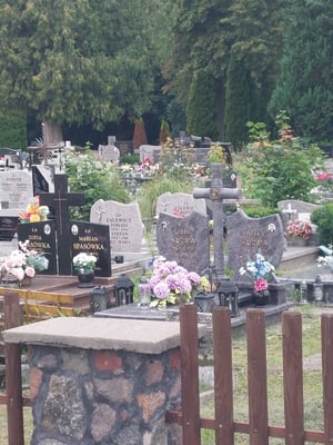 Polen ist sehr katholisch. Da hat es überall Kreuze oder Marienstatuen. Auch sind die Friedhöfe mit vielen Blumen geschmückt.